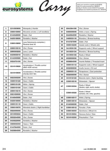 - EURO 5 EVO RG Motorhacke Ersatzteile